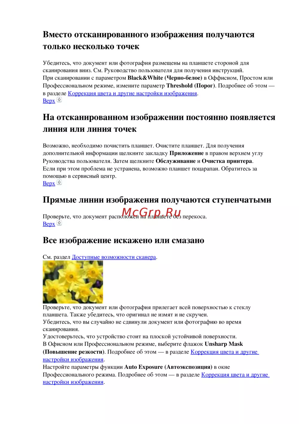 - Вместо отсканированного изображения получаются только несколько точек p.114