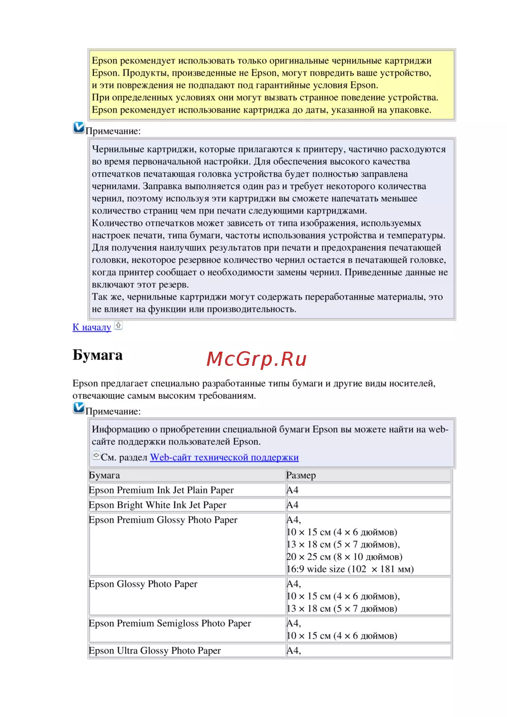 Информацию о приобретении специальной бумаги Epson вы можете найти на web-