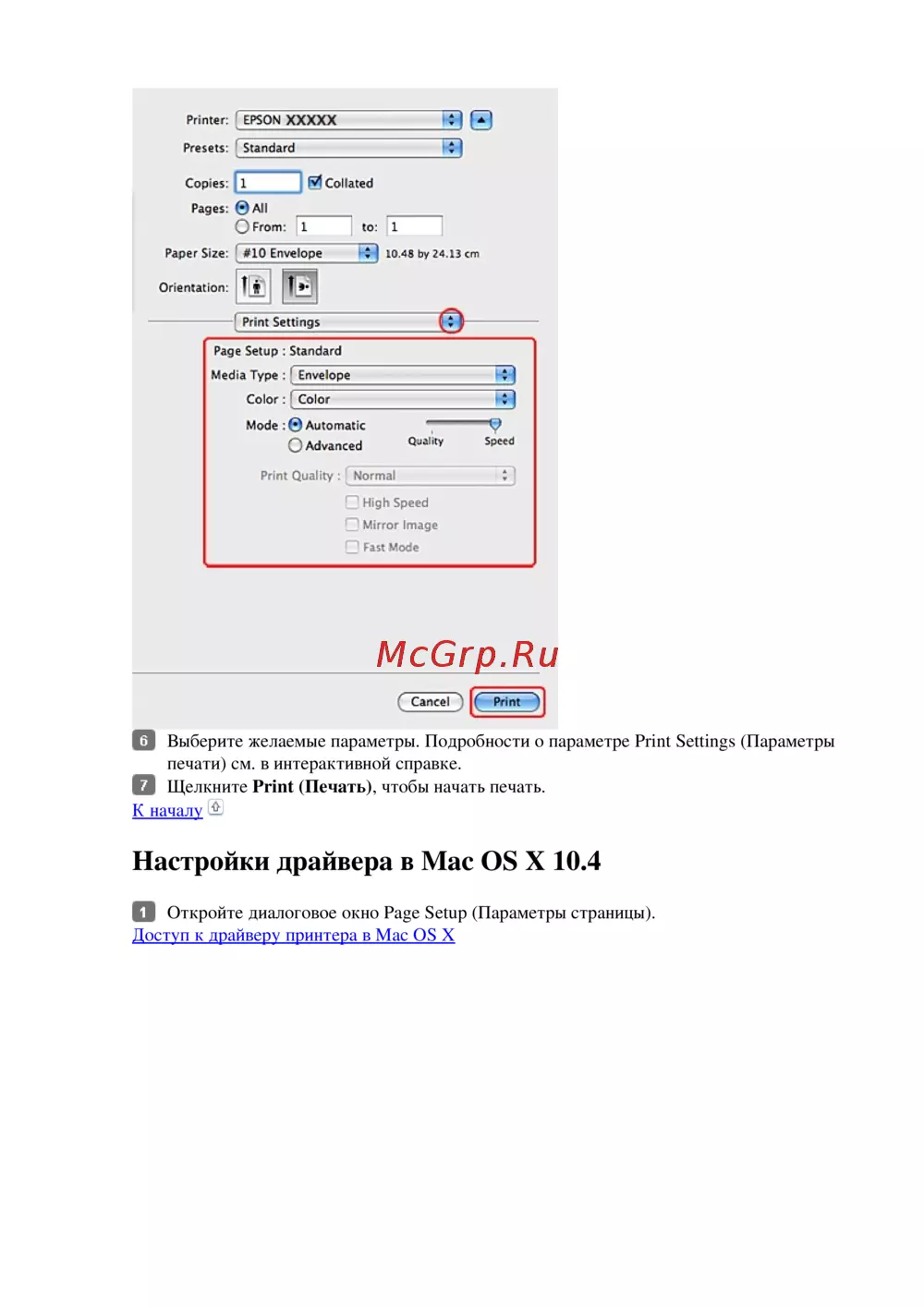 - Настройки драйвера в mac os x 10 или 10 p.37