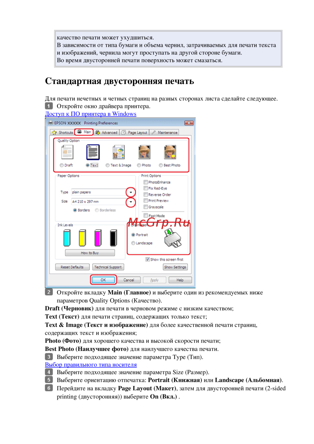 Epson Stylus SX130 — рекомендации по двусторонней печати и настройкам качества [29/132]