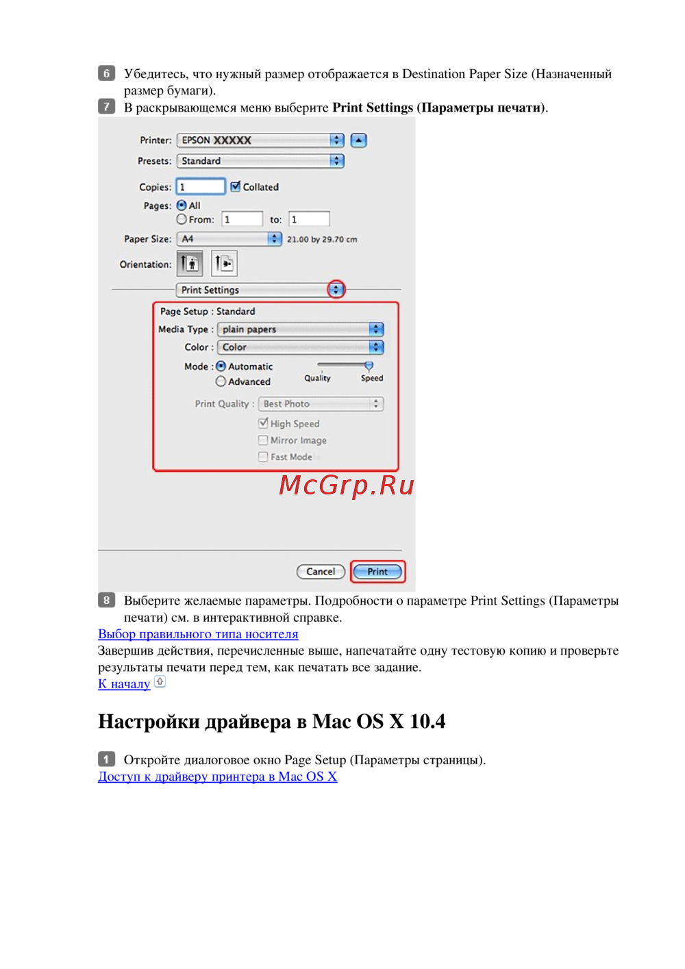 - Настройки драйвера в mac os x 10 или 10 p.37