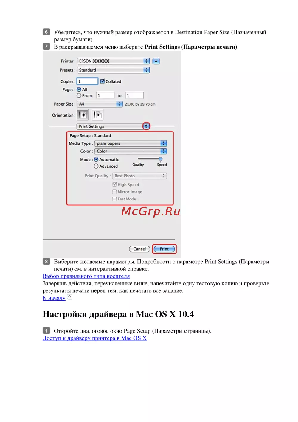 Epson Stylus SX130 — настройка параметров печати и размера бумаги на Mac OS X [39/132]