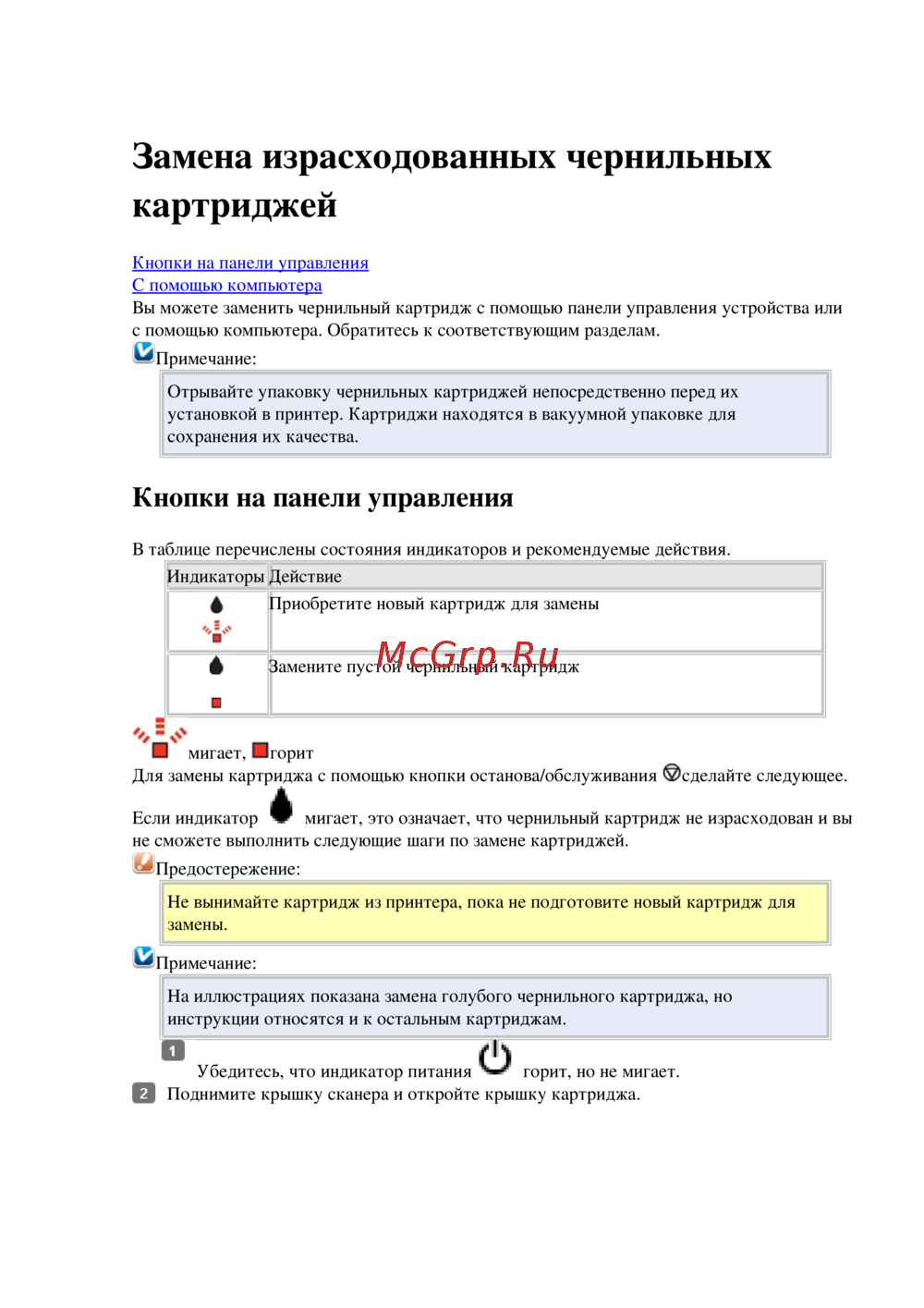 не сможете выполнить следующие шаги по замене картриджей.