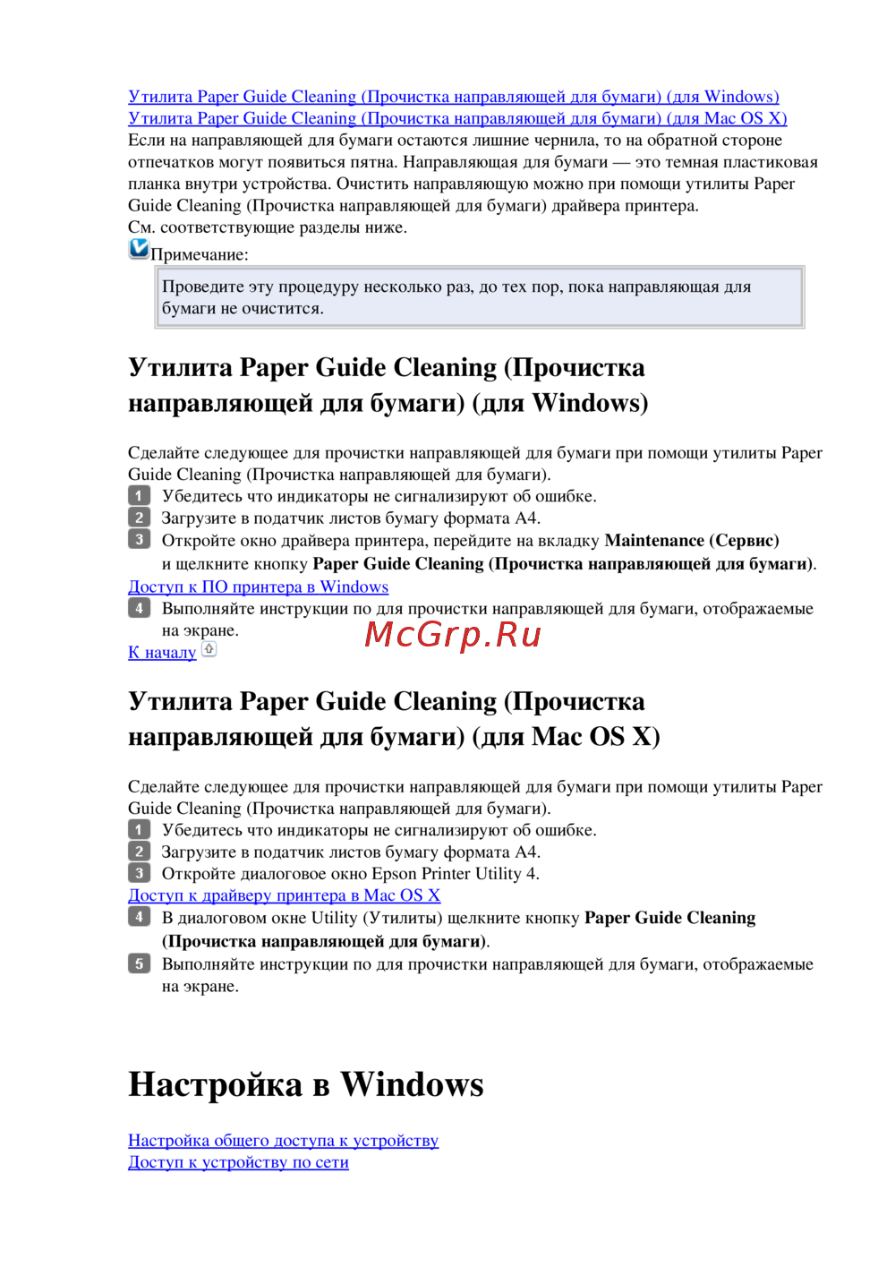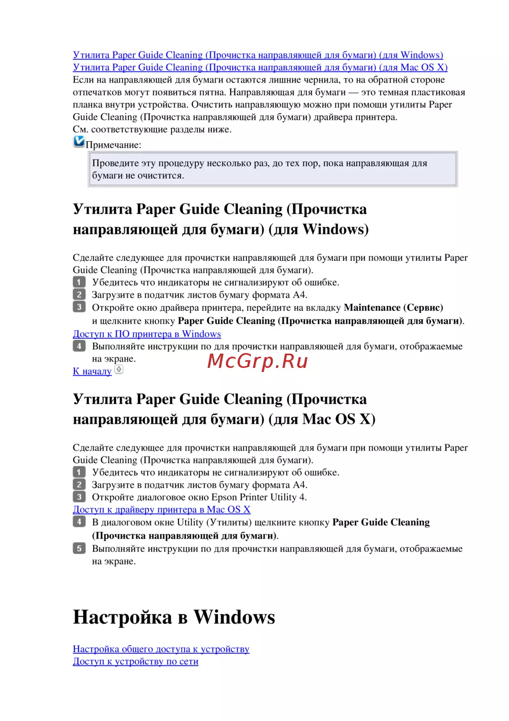 Guide Cleaning (Прочистка направляющей для бумаги) драйвера принтера.
