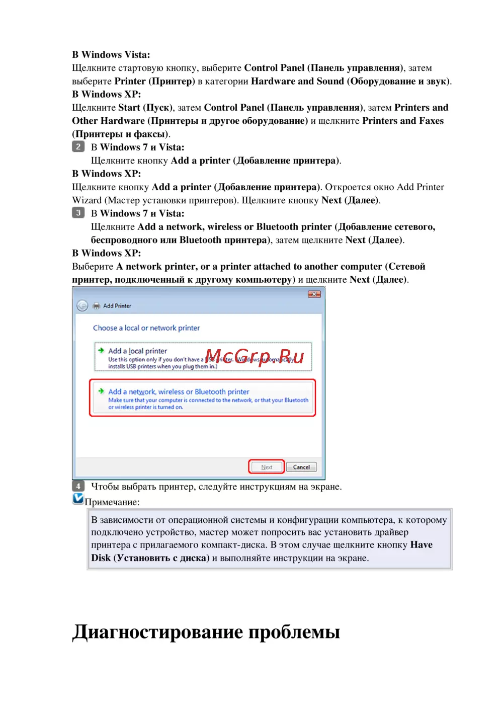 принтера с прилагаемого компакт-диска. В этом случае щелкните кнопку Have