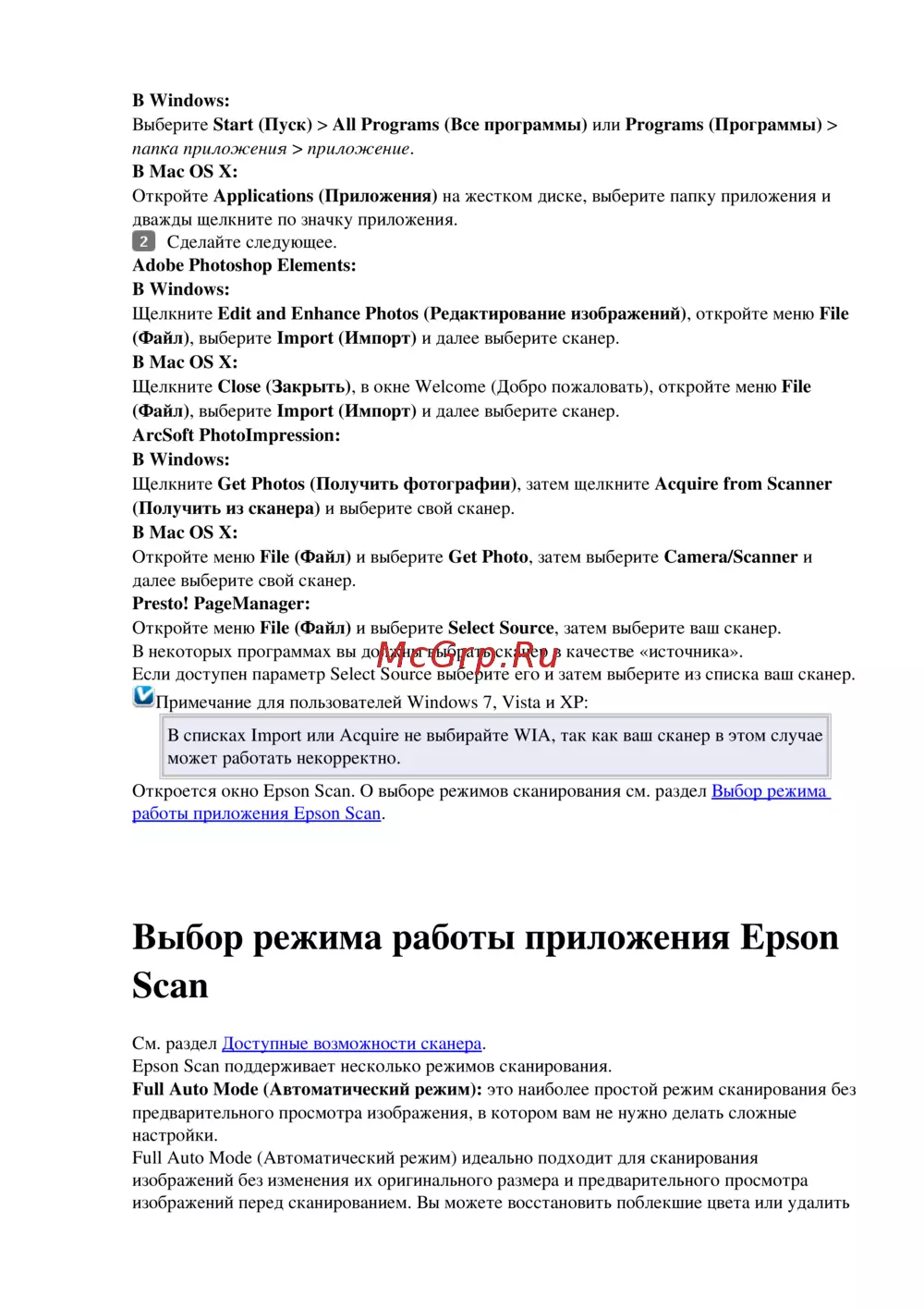 Примечание для пользователей Windows 7, Vista и XP: