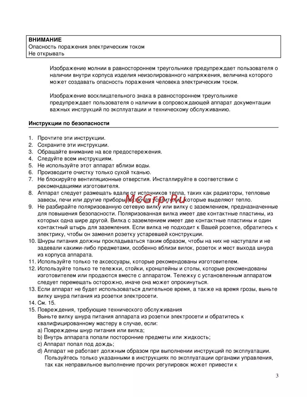 9. Не разбирайте поляризованную сетевую вилку или вилку с заземлением, предназначенные