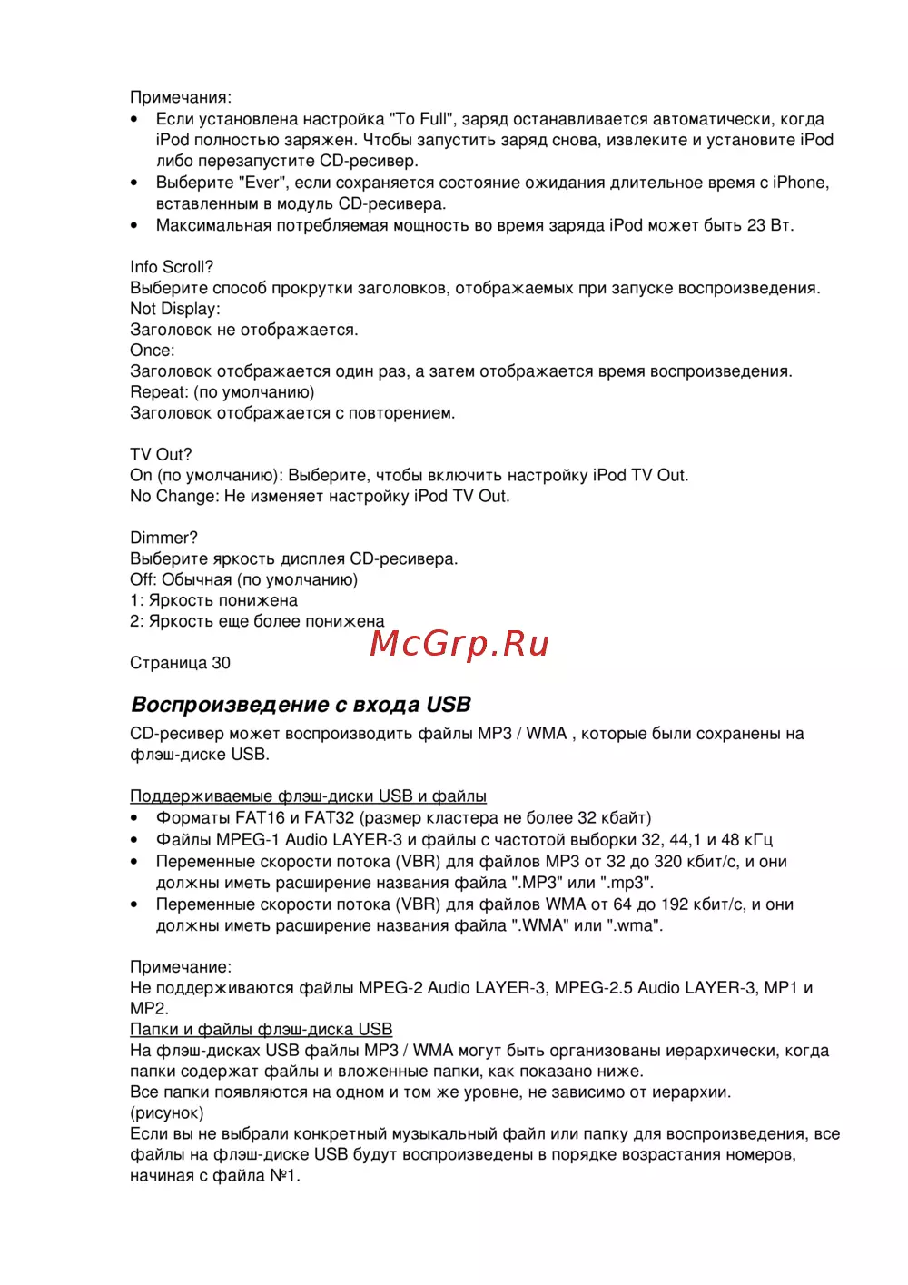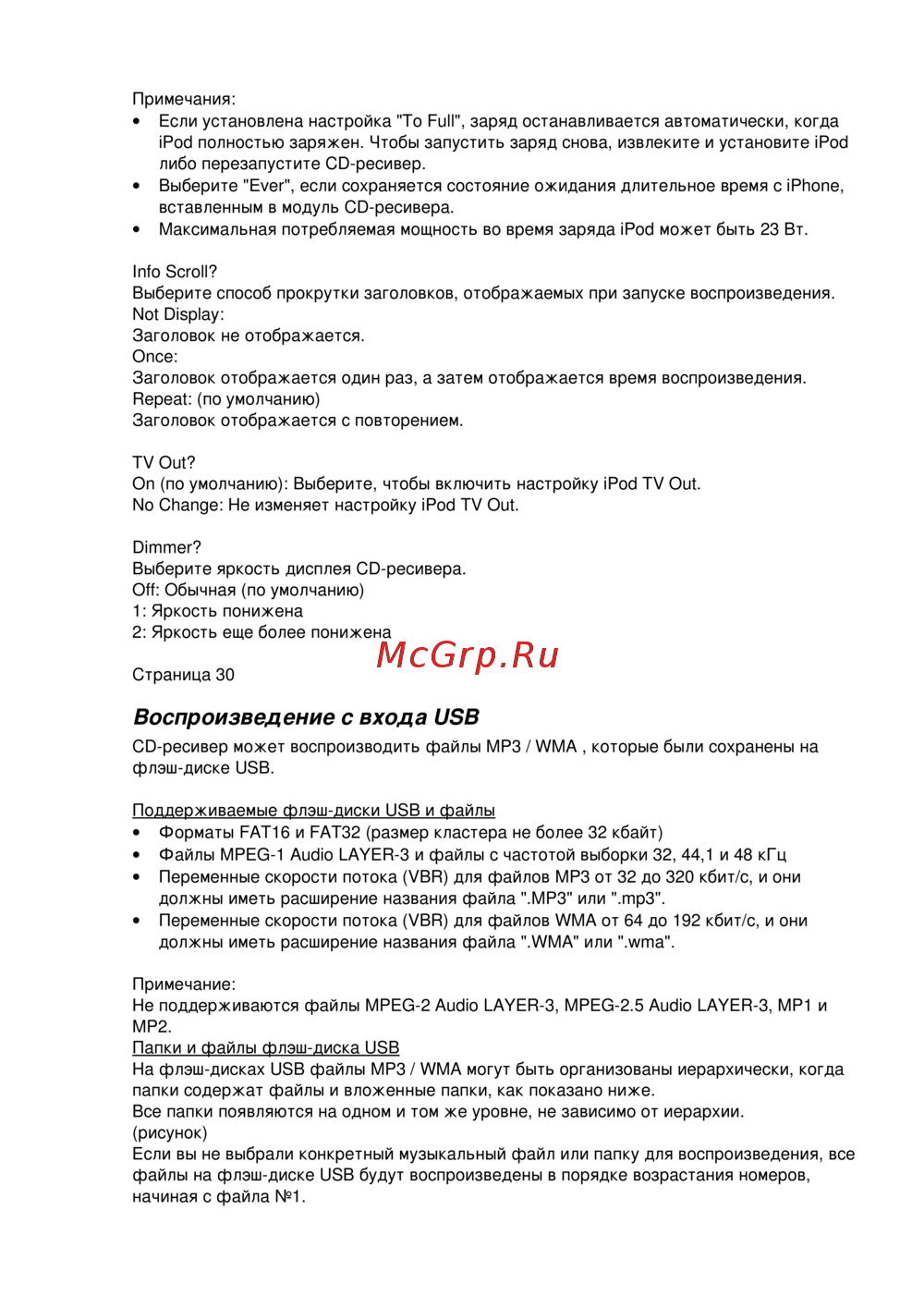 Максимальная потребляемая мощность во время заряда iPod может быть 23 Вт.