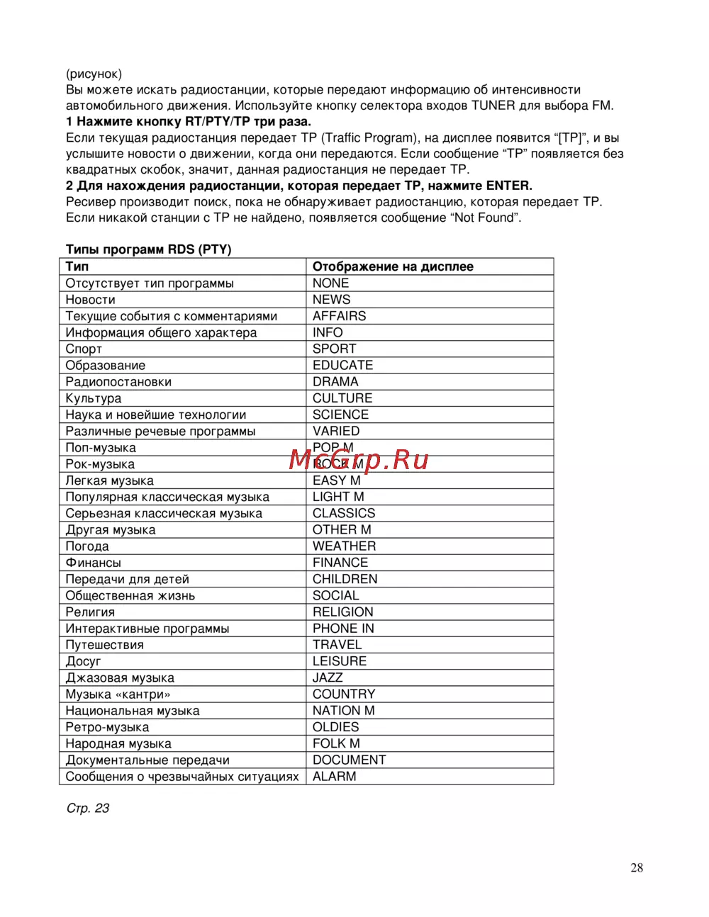 Если текущая радиостанция передает TP (Traffic Program), на дисплее появится “[TP]”, и вы