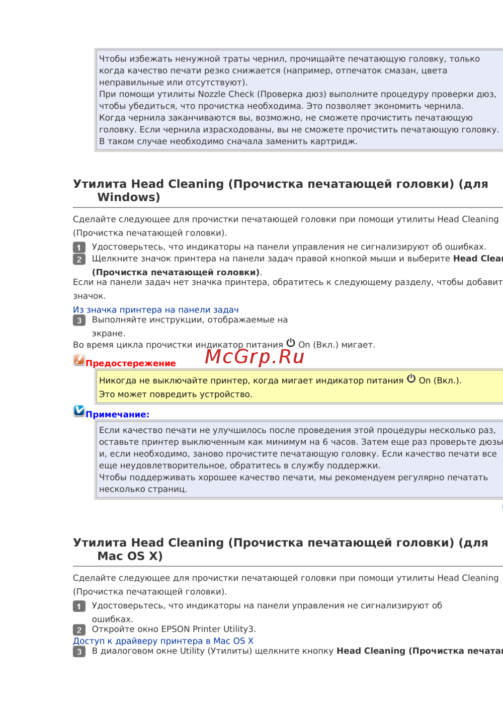 - Утилита head cleaning прочистка печатающей головки для mac os x p.16