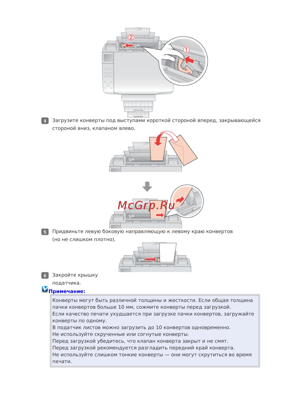 пачки конвертов больше 10 мм, сожмите конверты перед загрузкой.