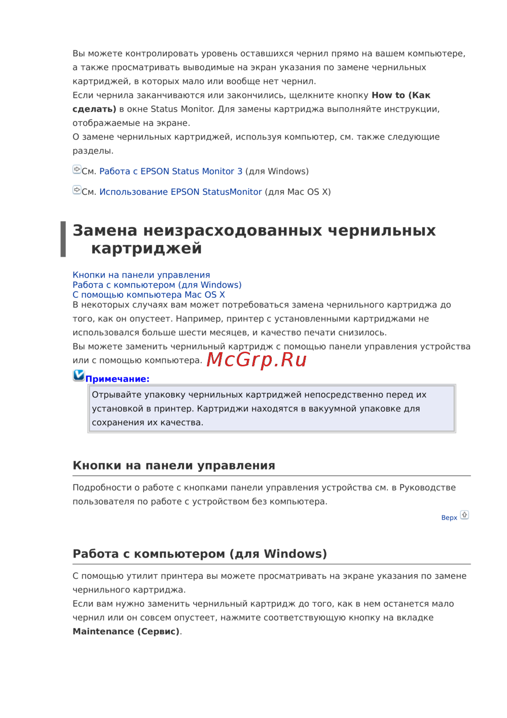 - Использование epson statusmonitor p.37