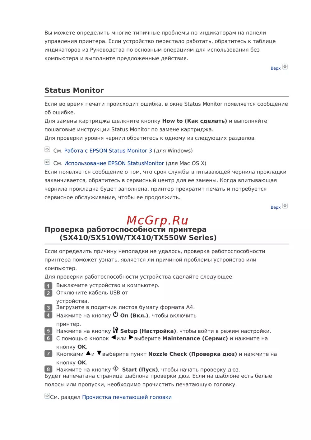 - Проверка работоспособности принтера sx410 sx510w tx410 tx550w series p.33