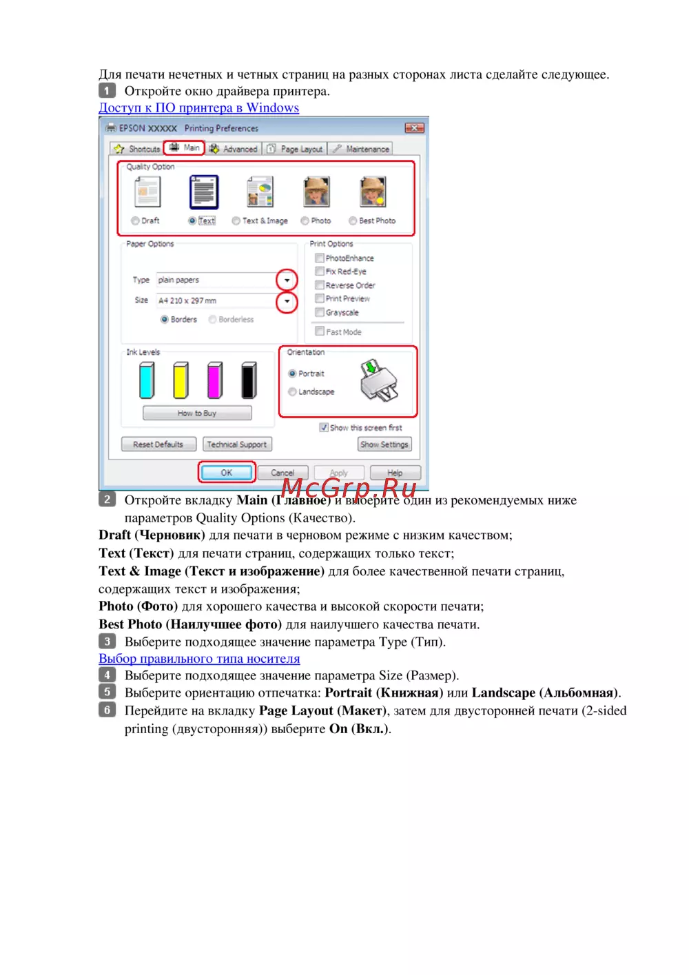 Epson Stylus SX230 — как настроить двустороннюю печать и параметры качества [28/148]