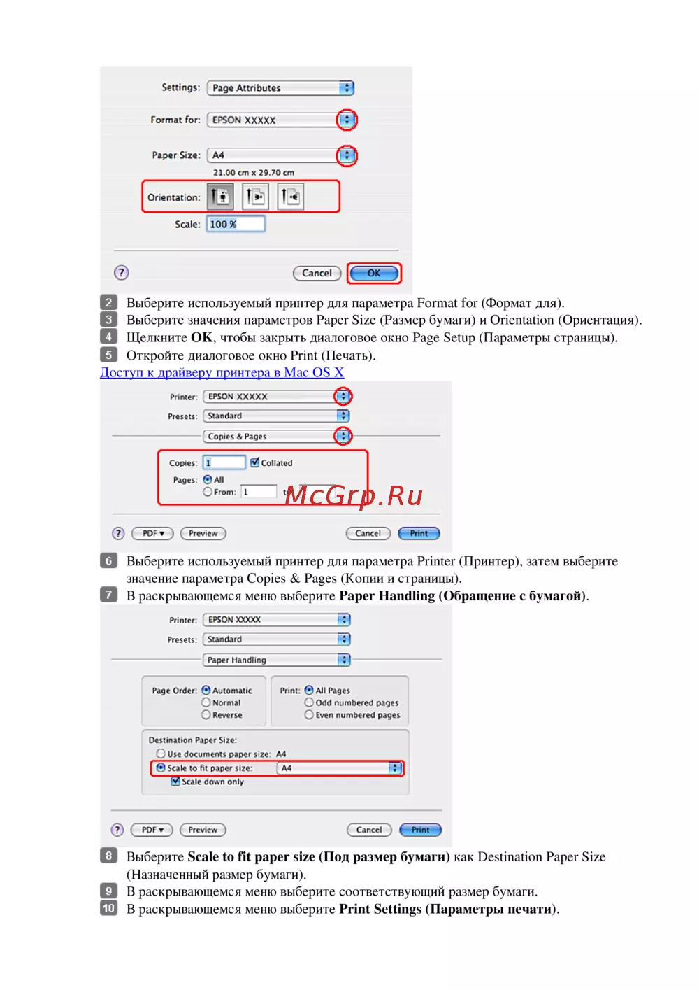 - Настройки драйвера в mac os x 10 p.44