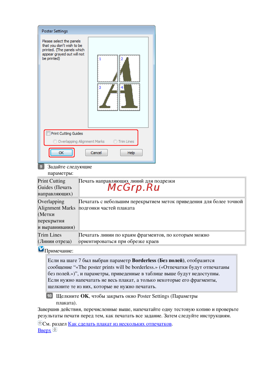 Epson Stylus SX230 — настройки печати плакатов: направляющие и линии обрезки [49/148]