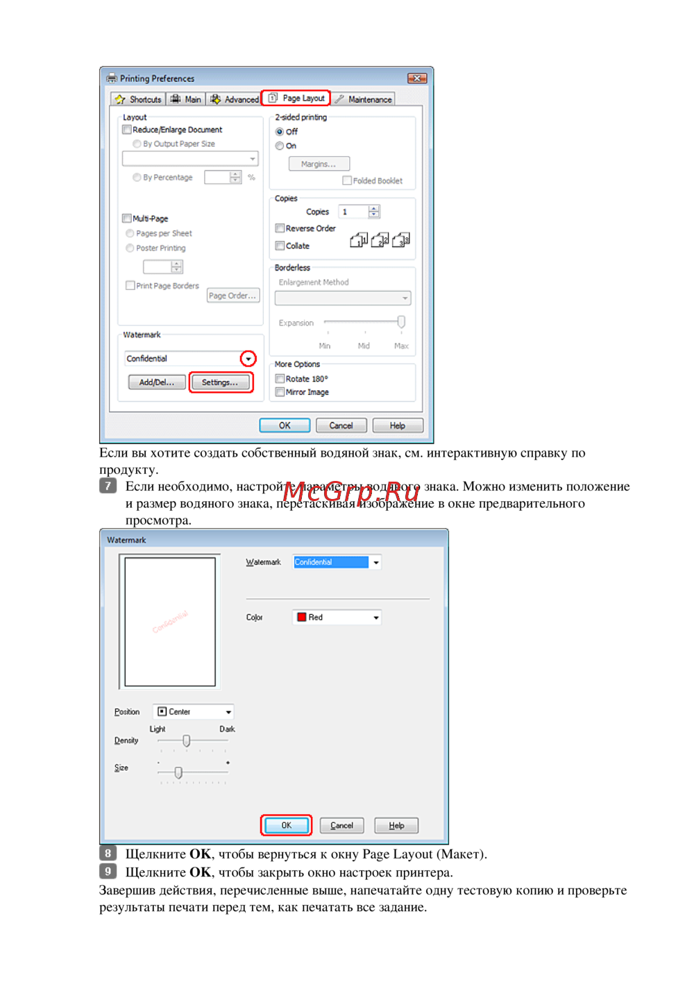 Epson Stylus SX230 — создание и настройка водяного знака для печати [53/148]