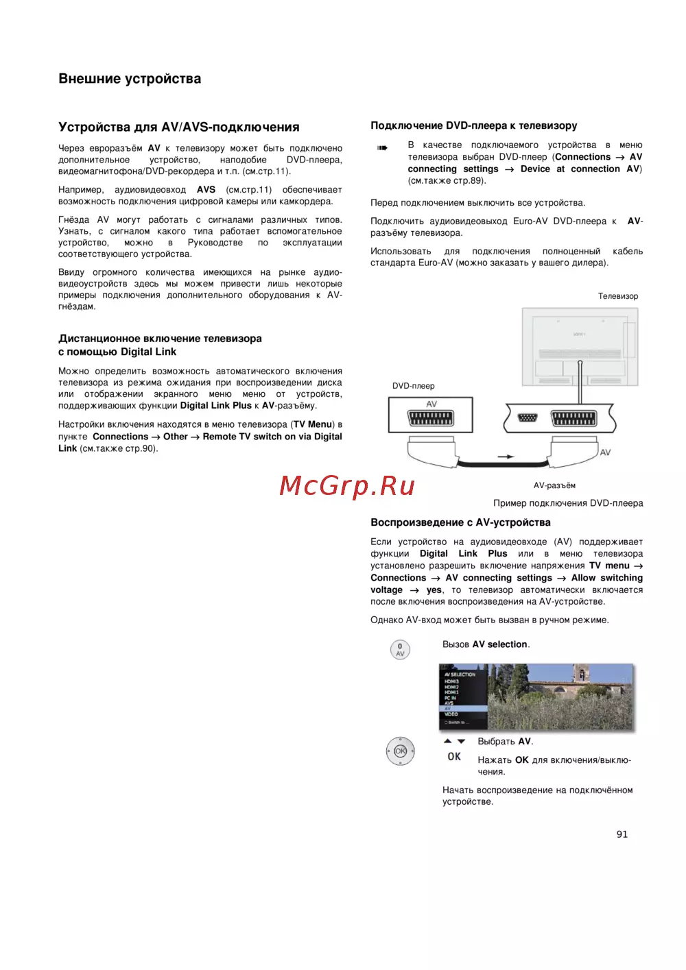 Если устройство на аудиовидеовходе (AV) поддерживает