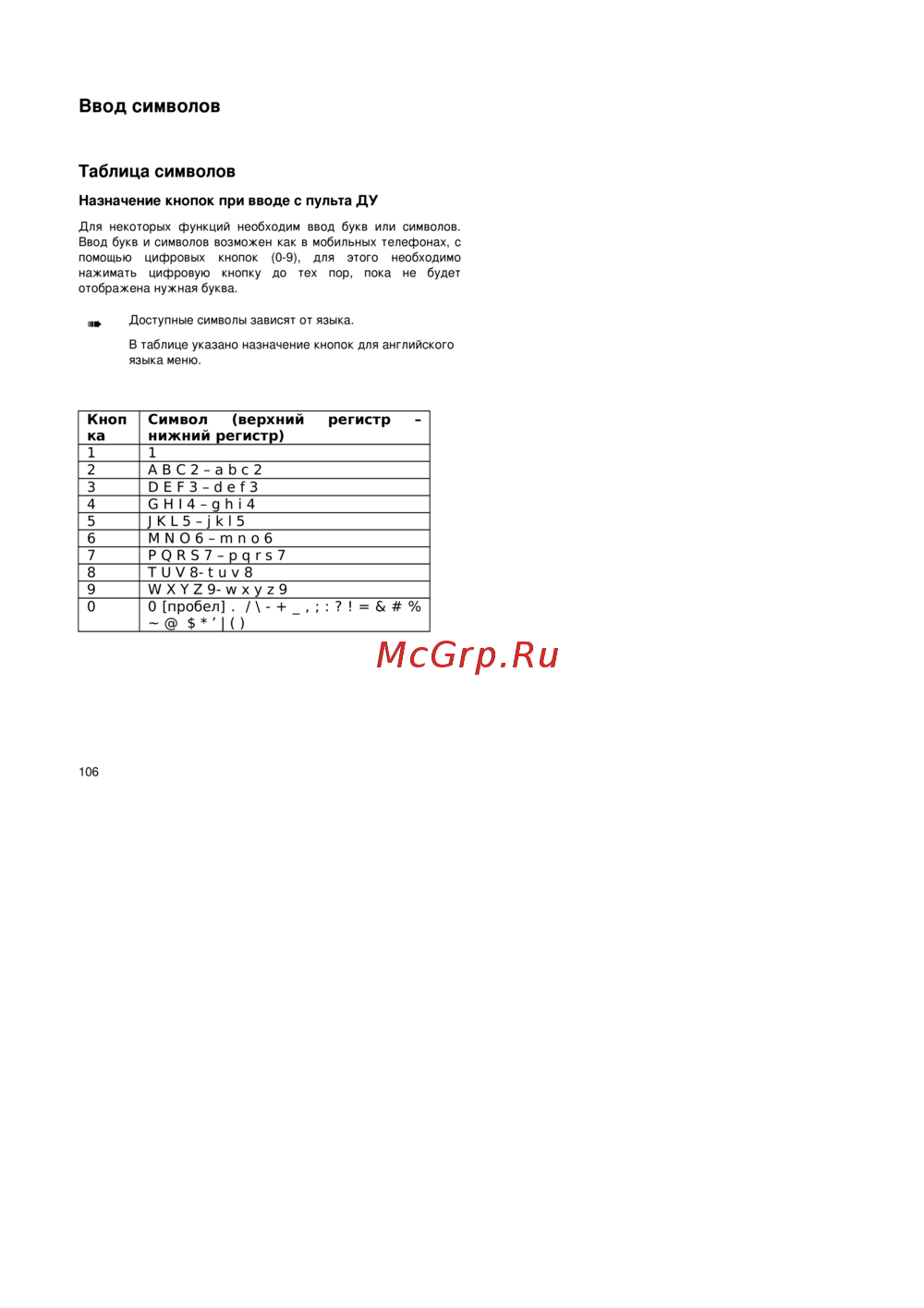 Узнайте, как вводить буквы и символы с помощью пульта ДУ. Ознакомьтесь с таблицей символов и назначением кнопок для удобного ввода.