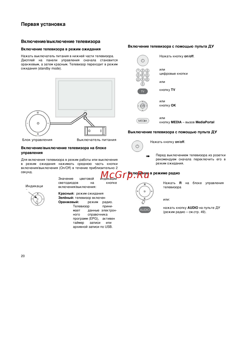 - Использование пульта ду для управления телевизором в режиме радио p.120