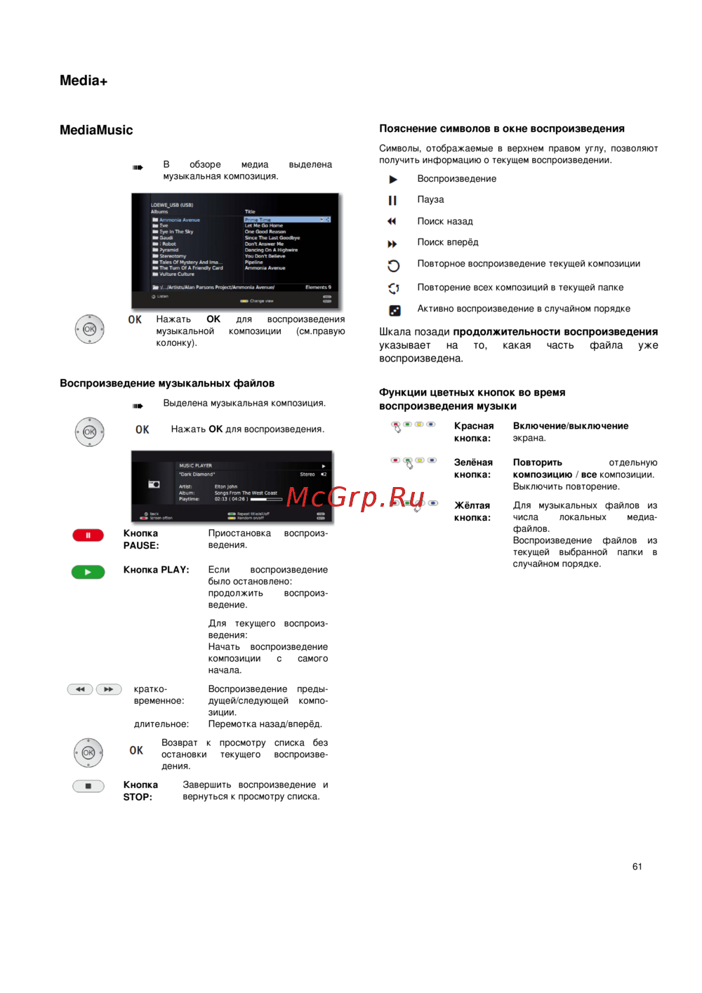 Узнайте о возможностях воспроизведения музыкальных файлов, включая паузу, перемотку и случайный порядок. Легкое управление и доступ к информации о текущем треке.