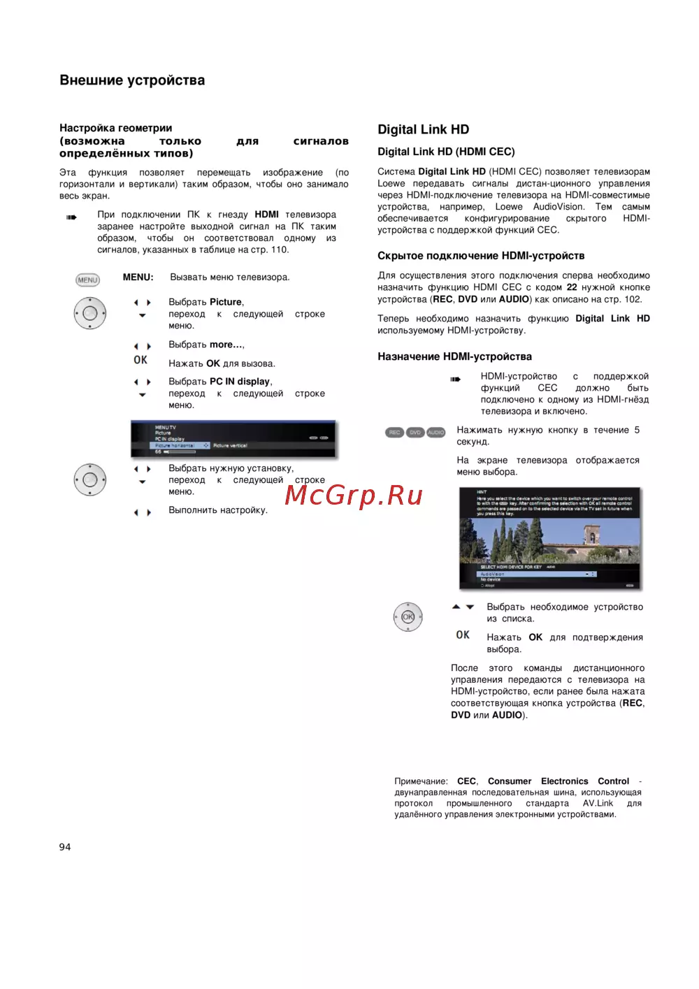 Система Digital Link HD (HDMI CEC) позволяет телевизорам