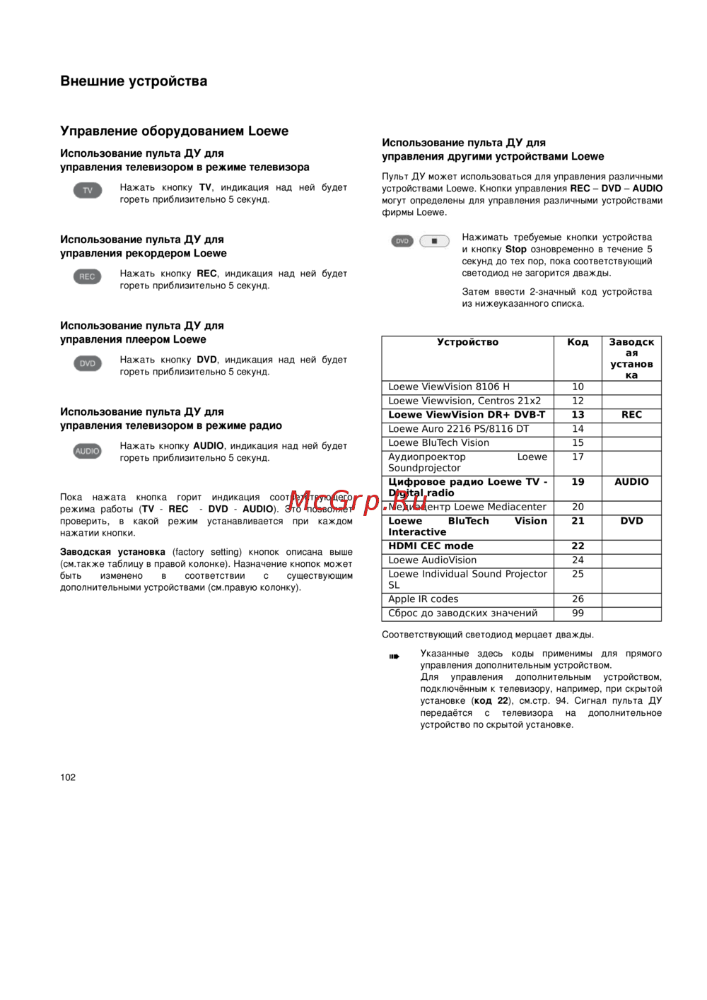- Использование пульта ду для управления другими устройствами loewe p.120
