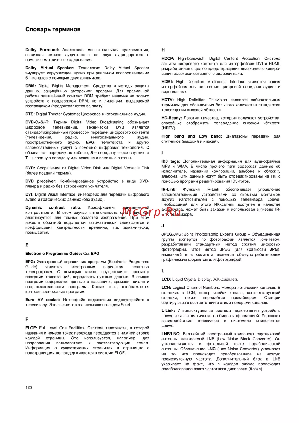 Loewe Xelos 50422T80 Silver — словарь терминов аудиовизуальных технологий и стандартов [139/150]