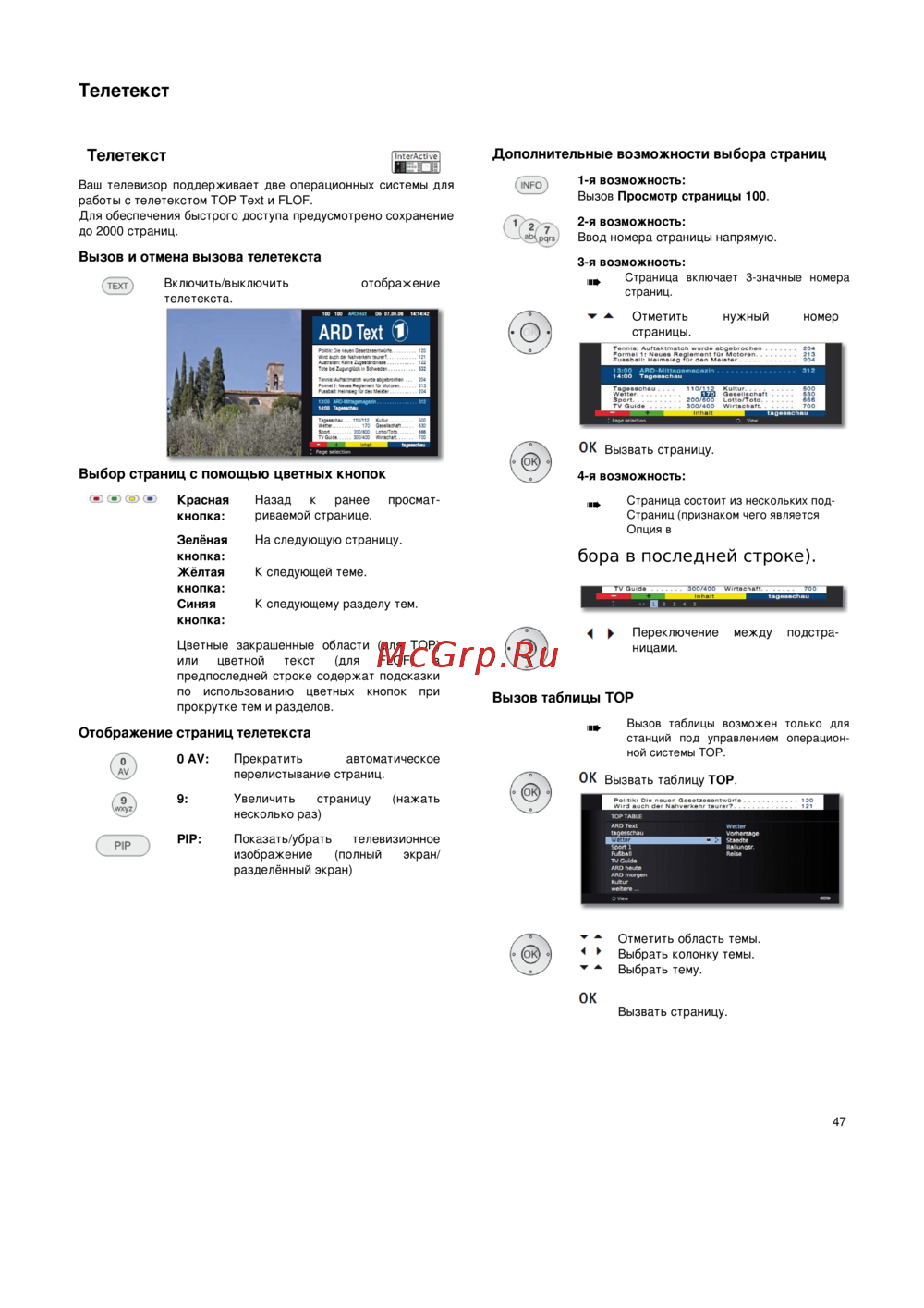 работы с телетекстом TOP Text и FLOF.