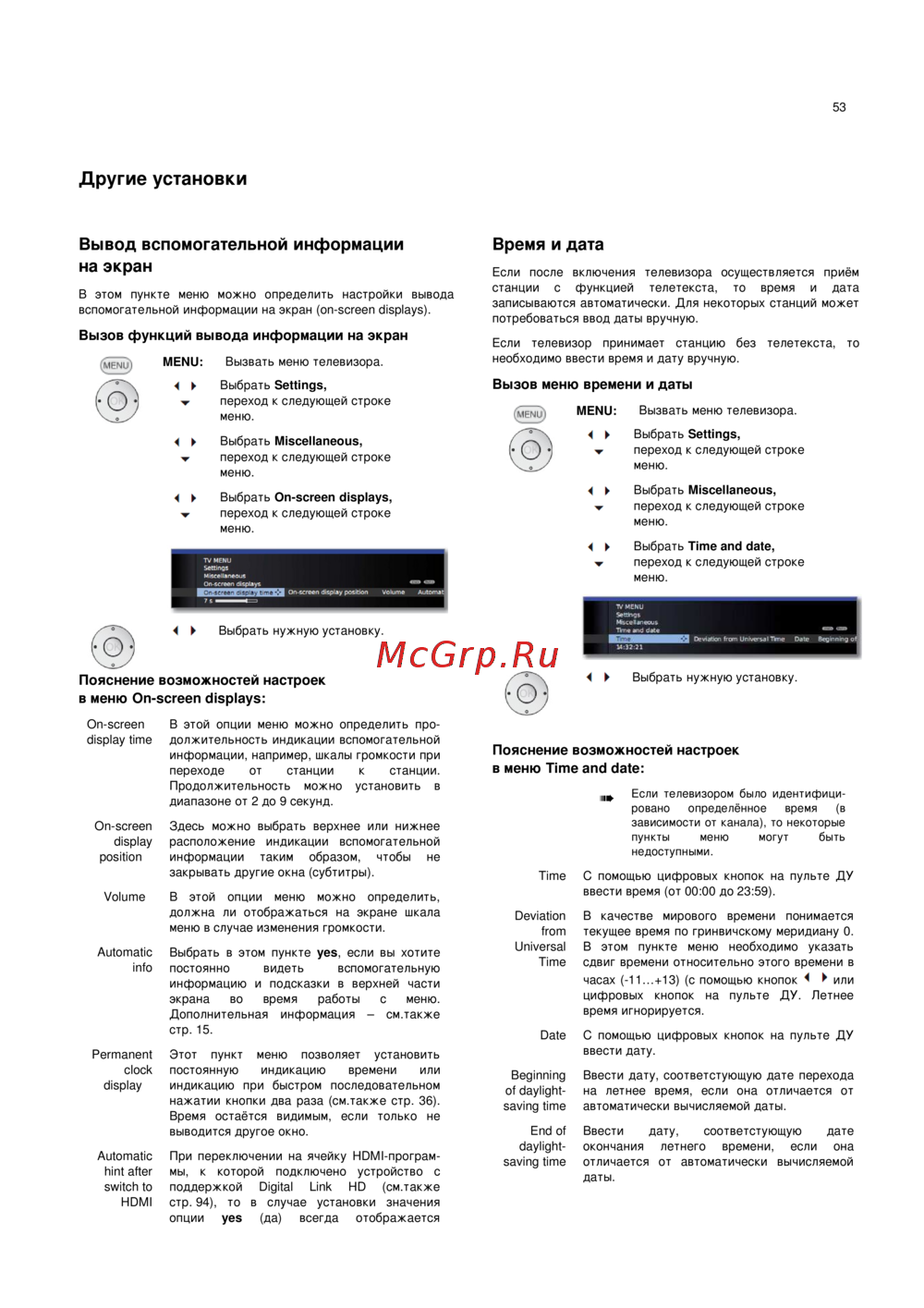 Узнайте, как настроить вывод вспомогательной информации на экран телевизора. Настройте время отображения, позицию и другие параметры для удобства использования.