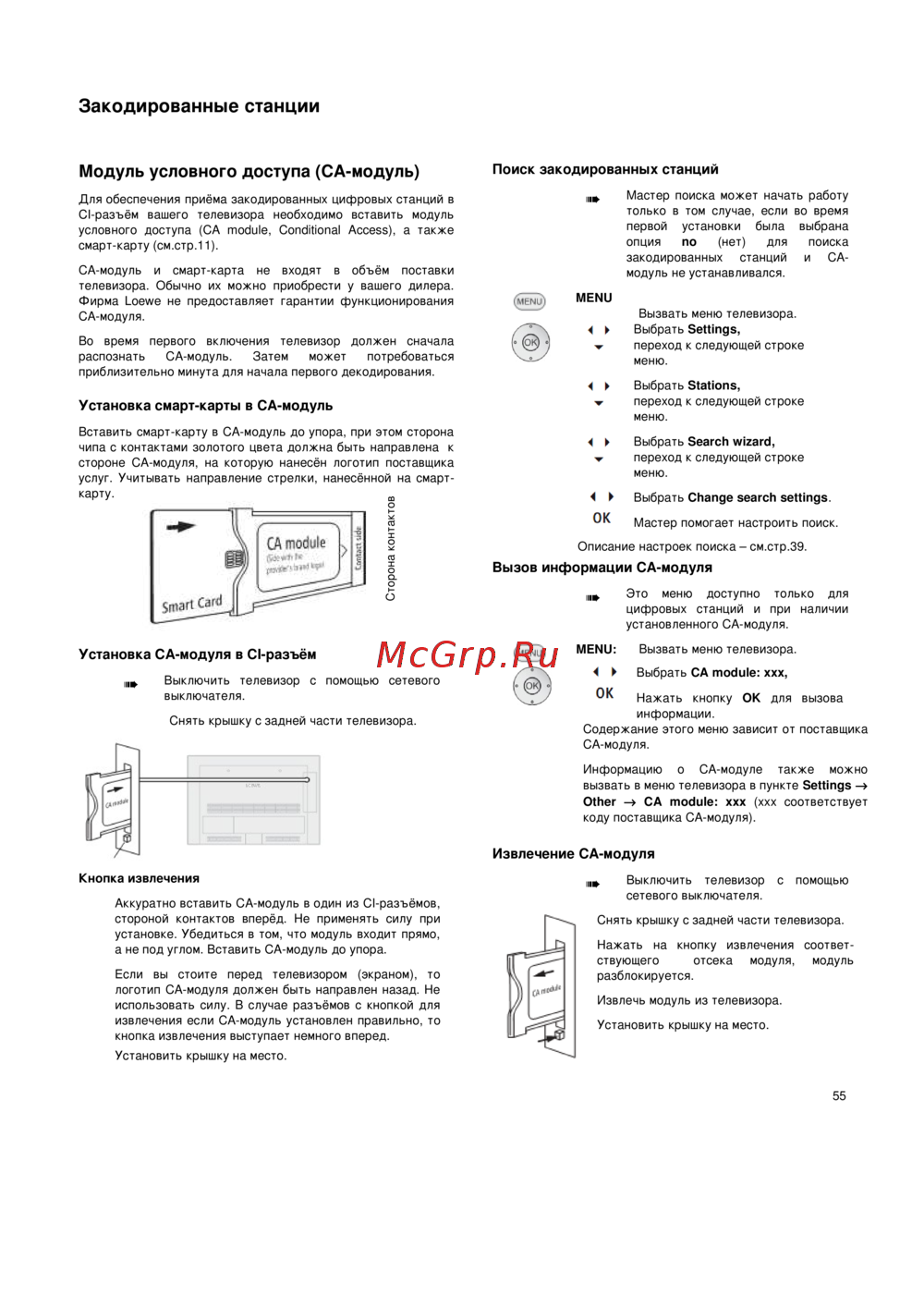 Узнайте, как правильно установить CA-модуль и смарт-карту для приема закодированных цифровых станций. Подробные инструкции и советы по настройке.