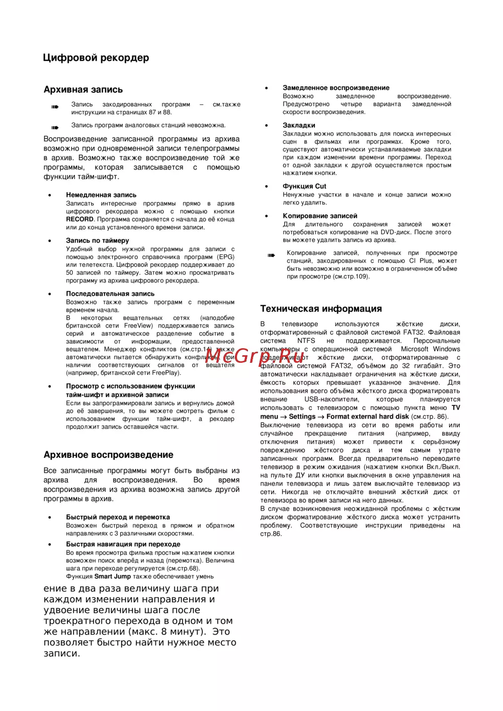 британской сети FreeView) поддерживается запись