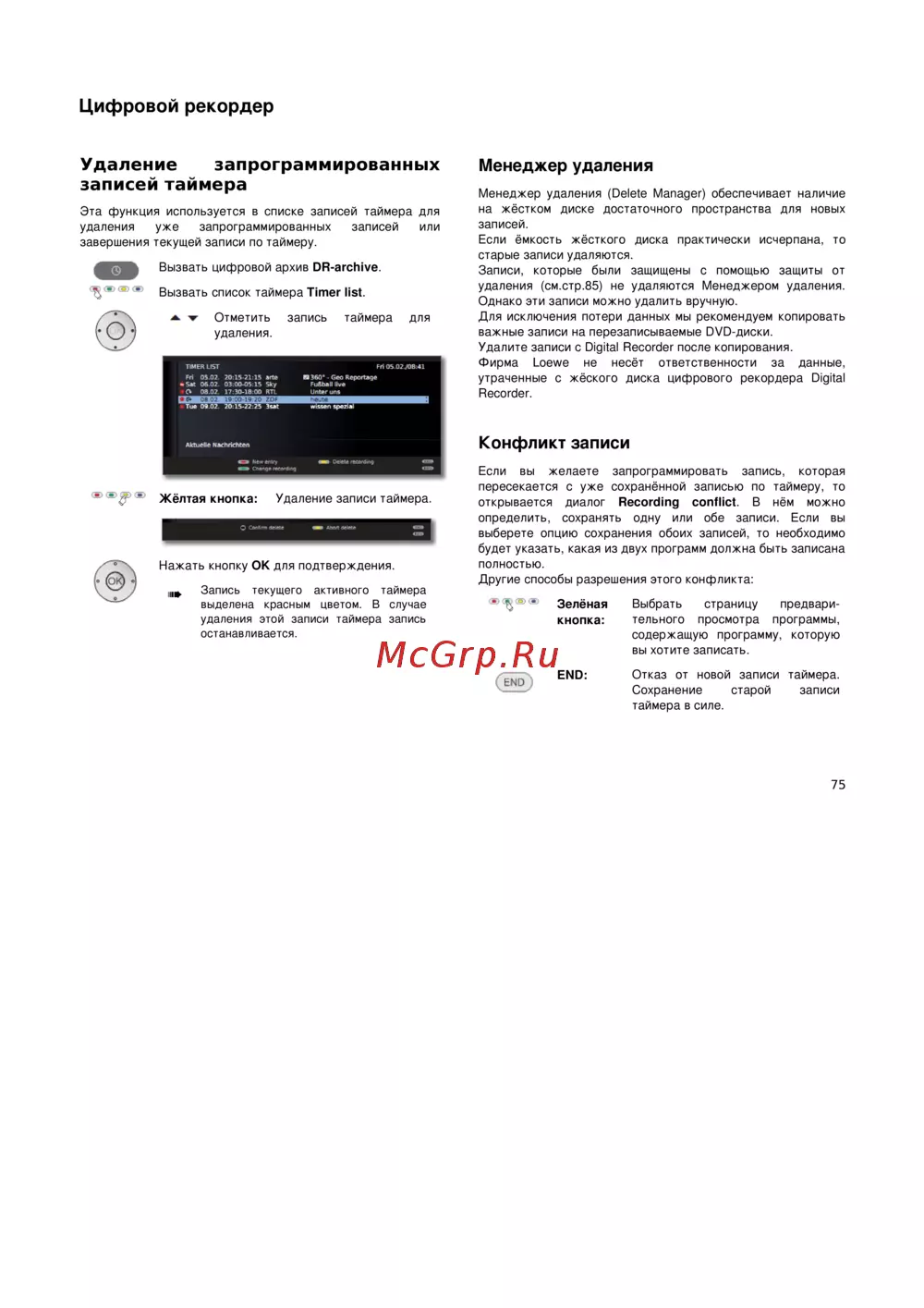 Loewe Xelos 50422T80 Silver — как удалить записи таймера на цифровом рекордере [89/150]