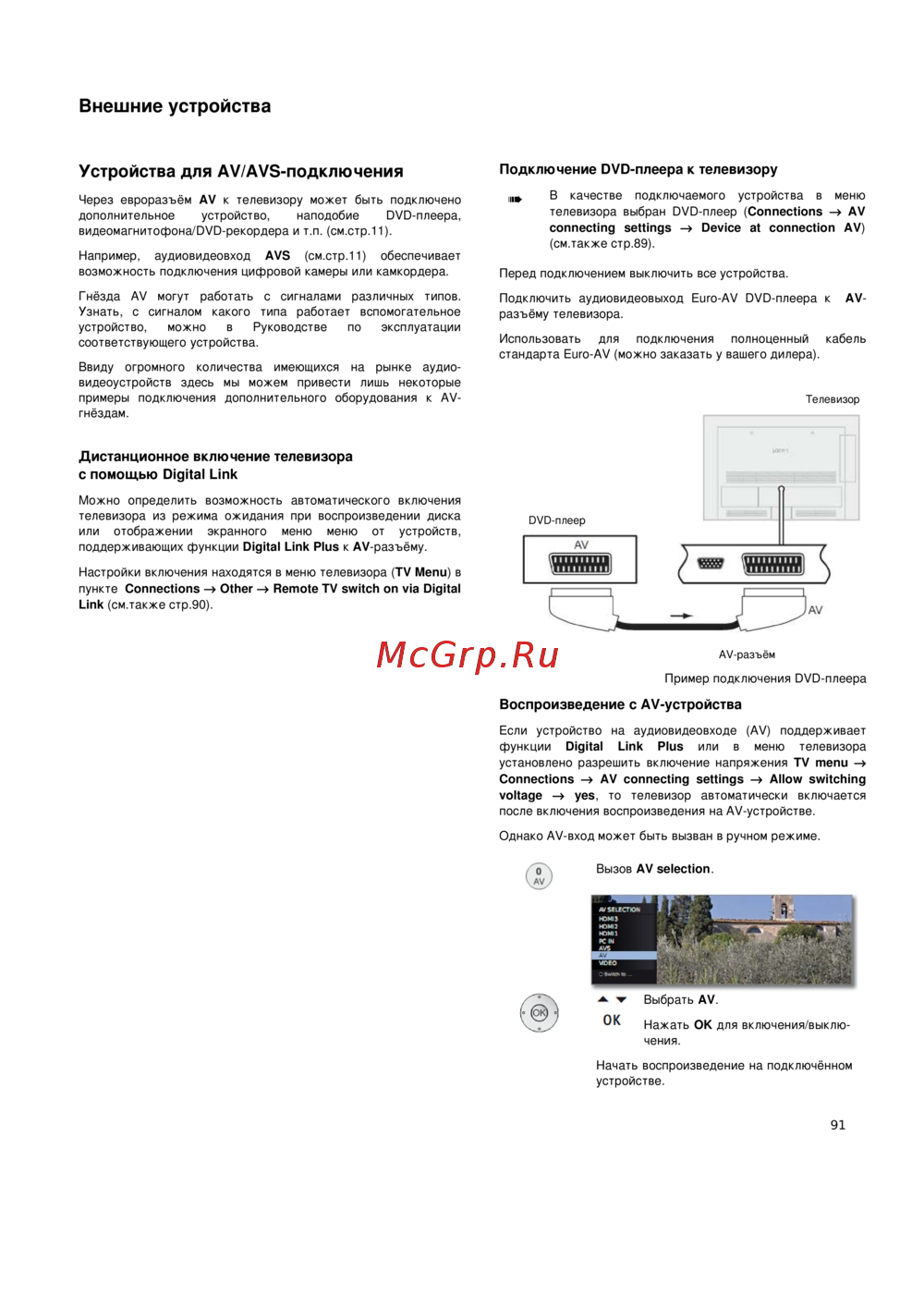 Узнайте, как подключить DVD-плеер и другие устройства к телевизору через AV-разъём. Получите советы по настройке и использованию Digital Link для удобства.