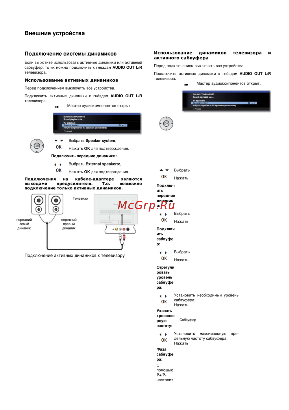 сабвуфер, то их можно подключить к гнёздам AUDIO OUT L/R