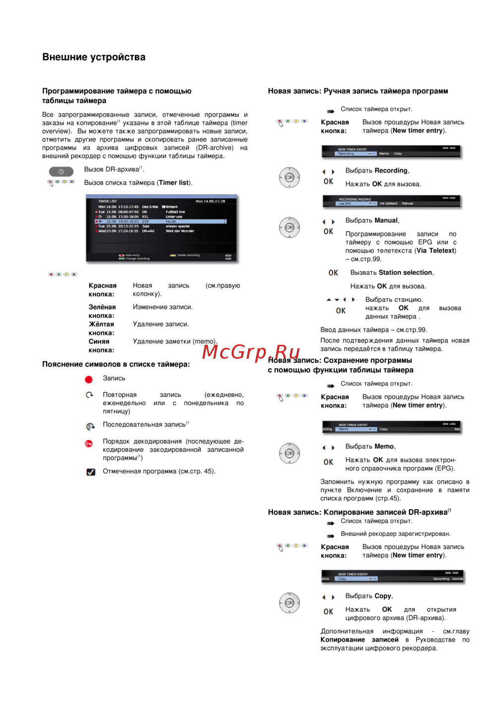 - Новая запись сохранение программы с помощью функции таблицы таймера p.117