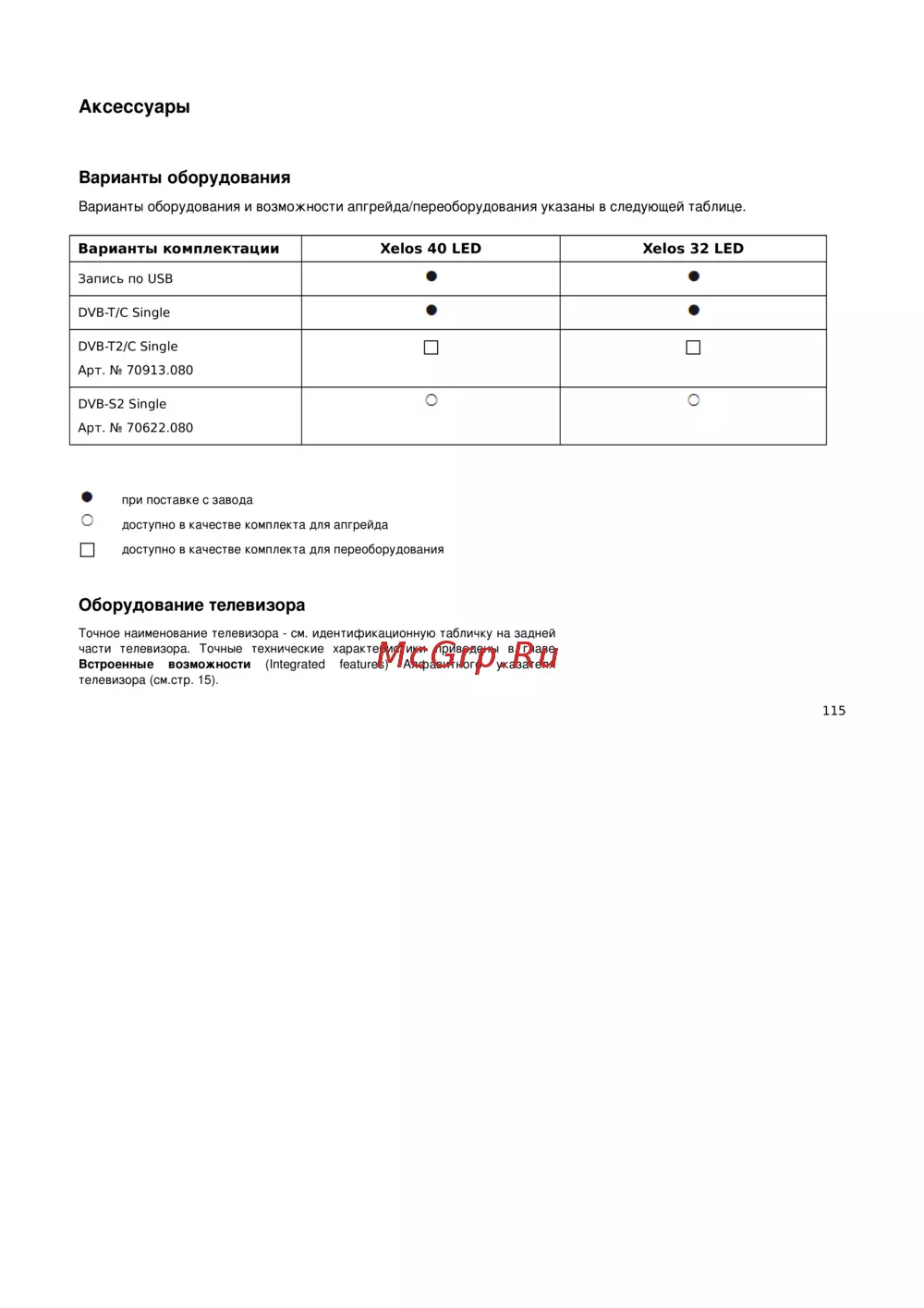 - Варианты комплектации xelos 40 led xelos 32 led p.133