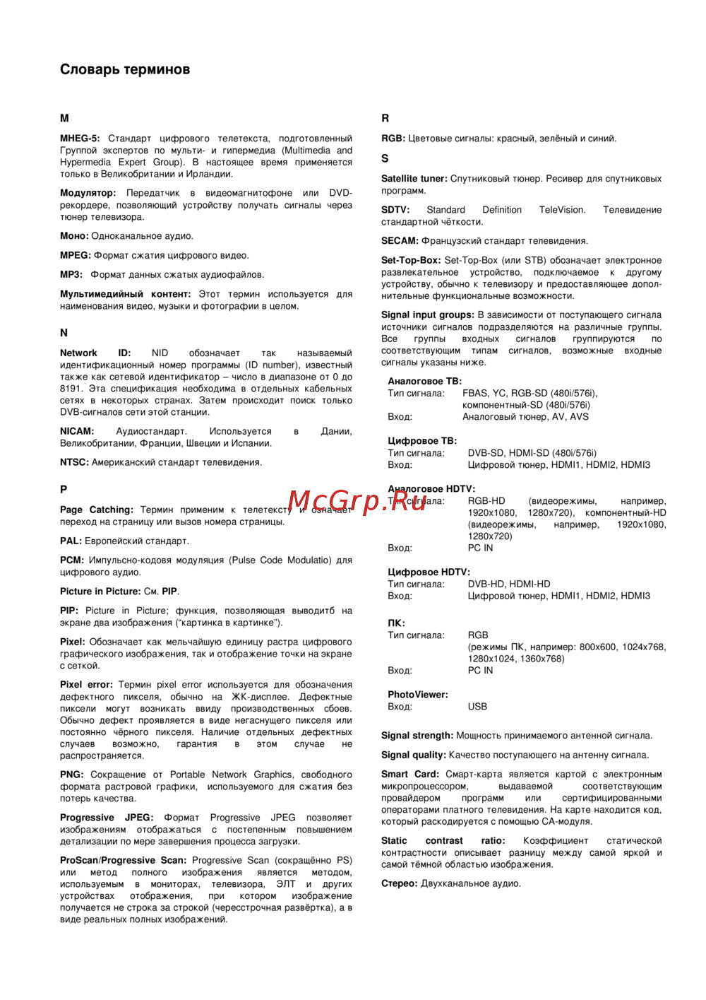 - Электрические характеристики сигналы поступающие по pc in hdmi p.128