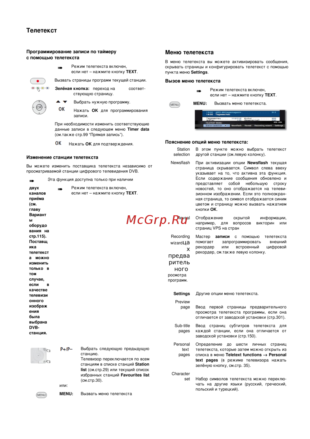 - Использование пульта ду для управления телевизором в режиме радио p.120