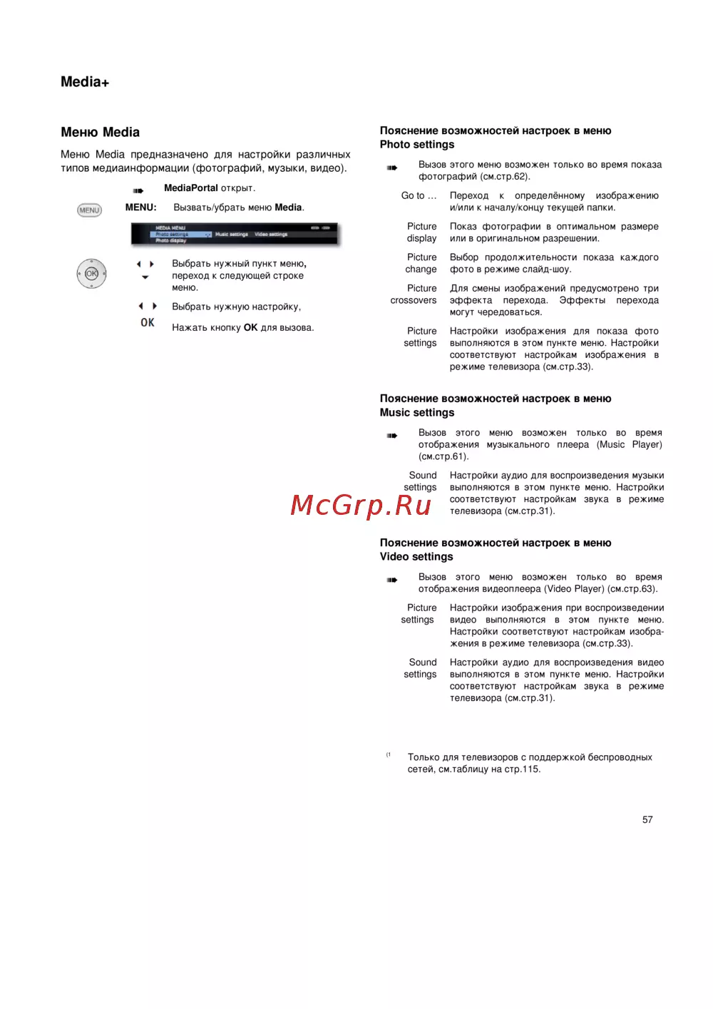 Изучите возможности меню Media для настройки фотографий, музыки и видео. Узнайте, как оптимизировать отображение и звук для каждого типа медиа.