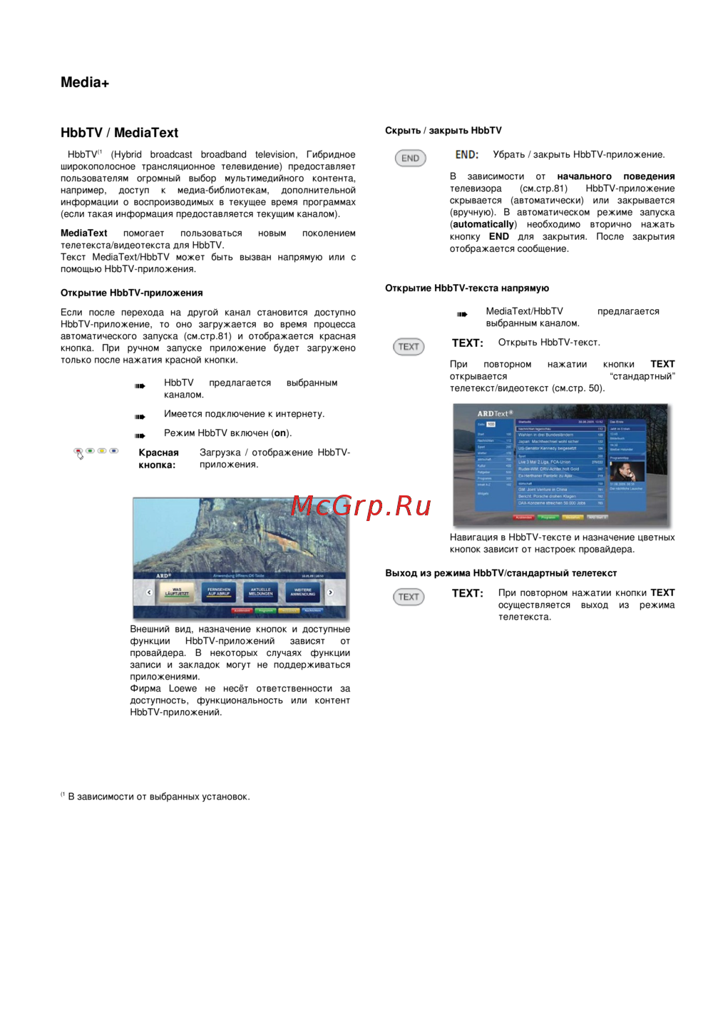 Текст MediaText/HbbTV может быть вызван напрямую или с