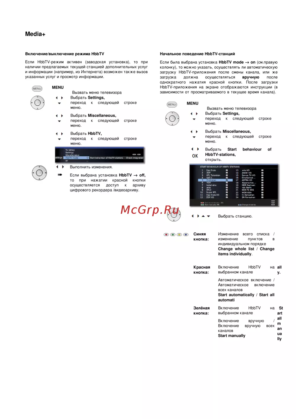 - Функции цветных кнопок в режиме телевизора p.2