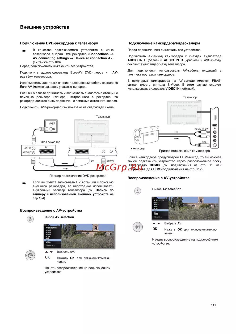 Подключить AV-выход камкордера к гнёздам аудиовхода