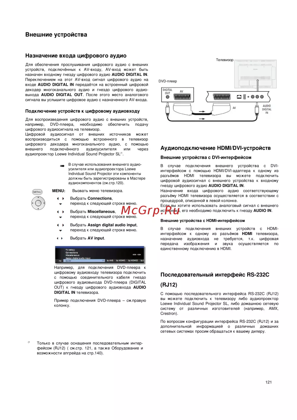 Переключением на этот AV-вход сигнал цифрового аудио на