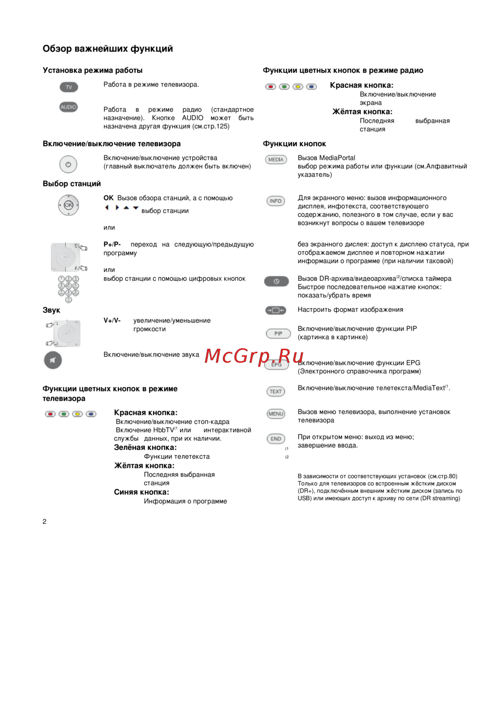 - Функции цветных кнопок в режиме телевизора p.2