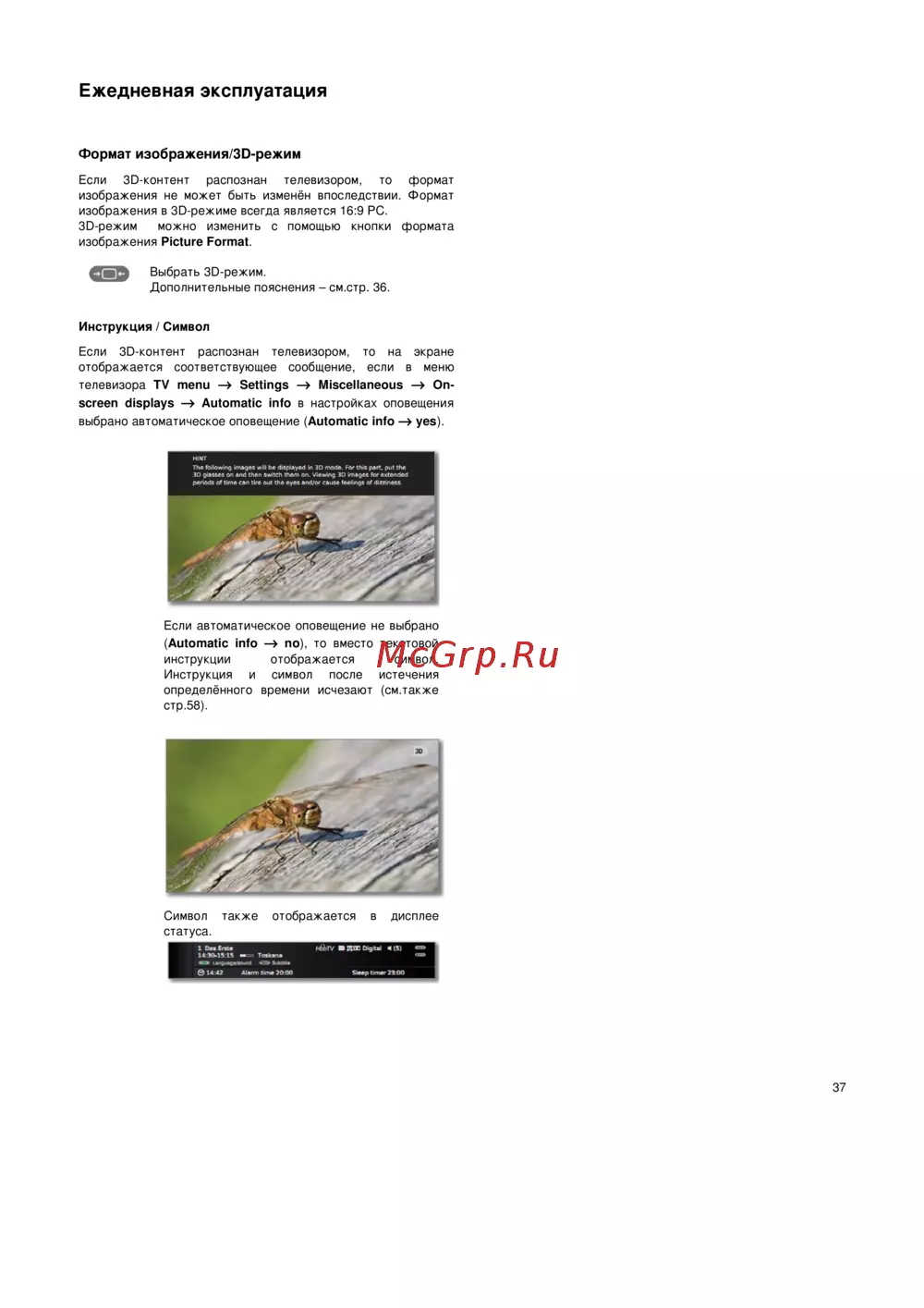 Узнайте, как включить и настроить 3D-режим на вашем телевизоре. Информация о формате изображения, автоматических уведомлениях и индикаторах.