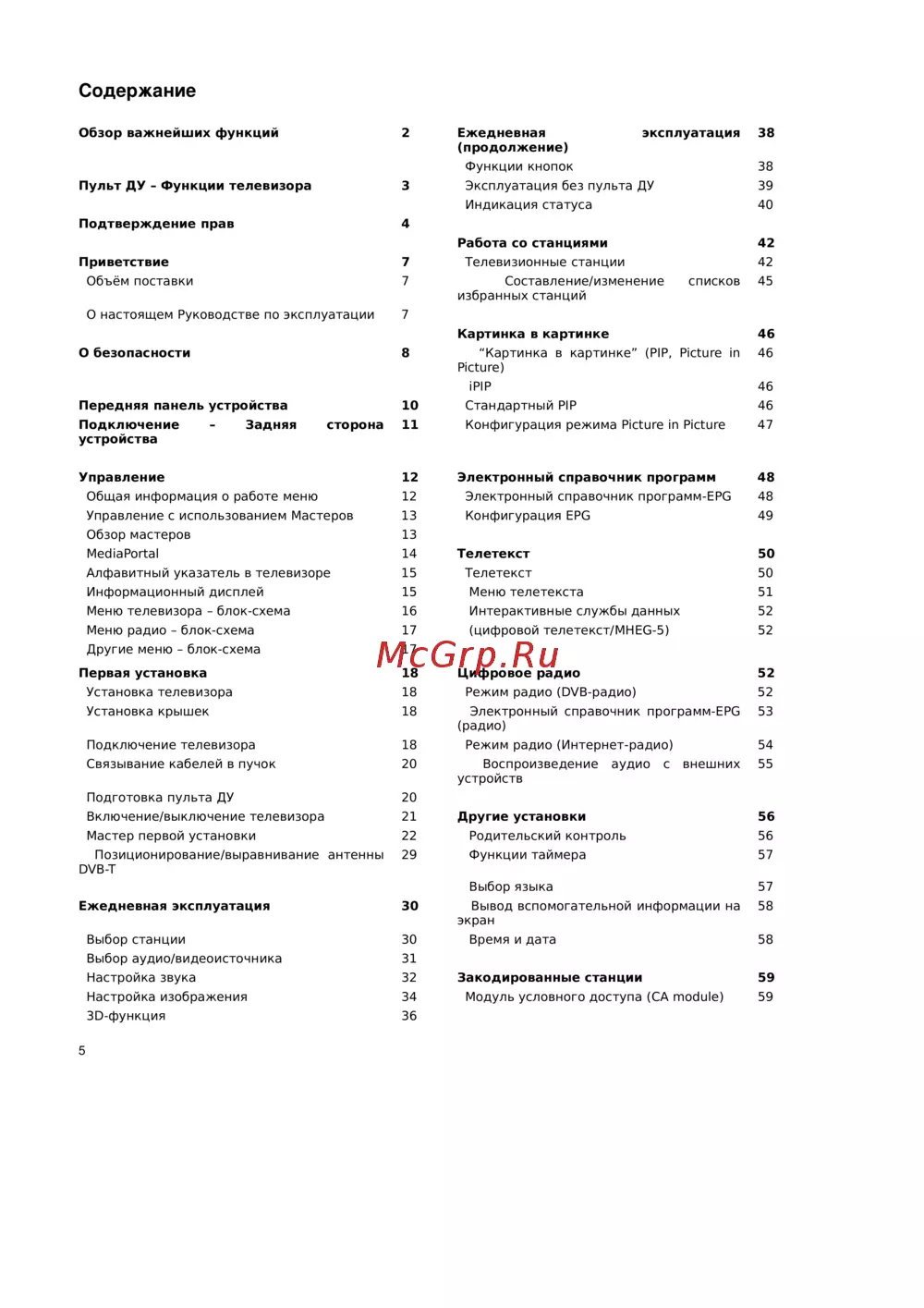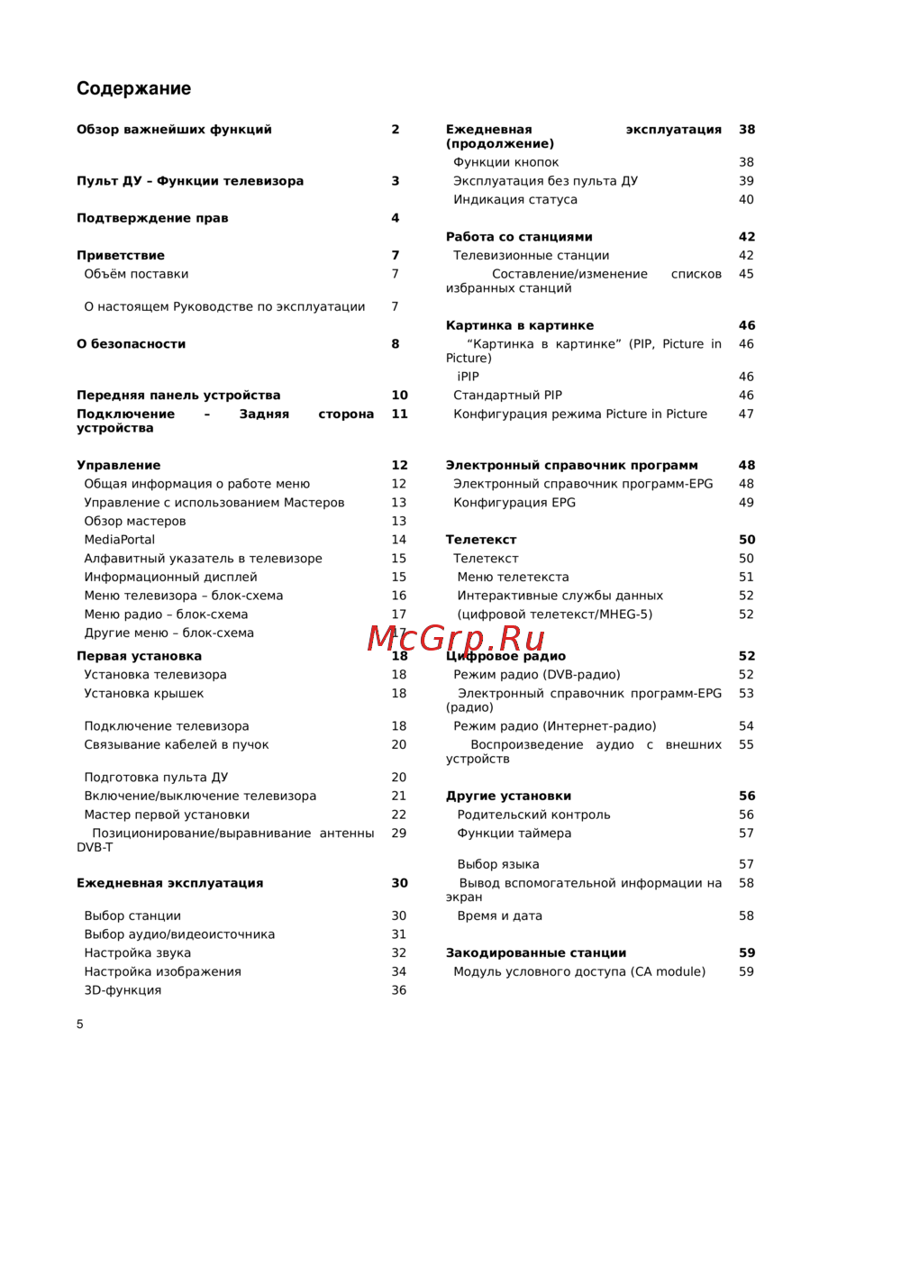 Установка телевизора 18 Режим радио (DVB-радио) 52