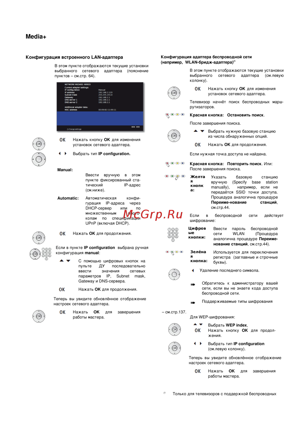 Инструкция по настройке сетевого адаптера на телевизоре: ручная и автоматическая конфигурация IP-адреса, подключение к Wi-Fi сети, ввод пароля и выбор типа шифрования.