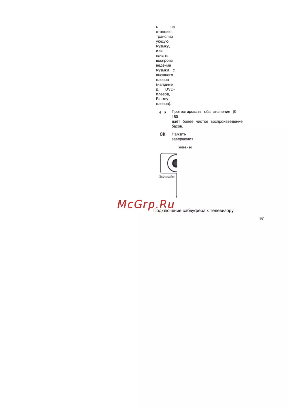 Подключение сабвуфера к телевизору