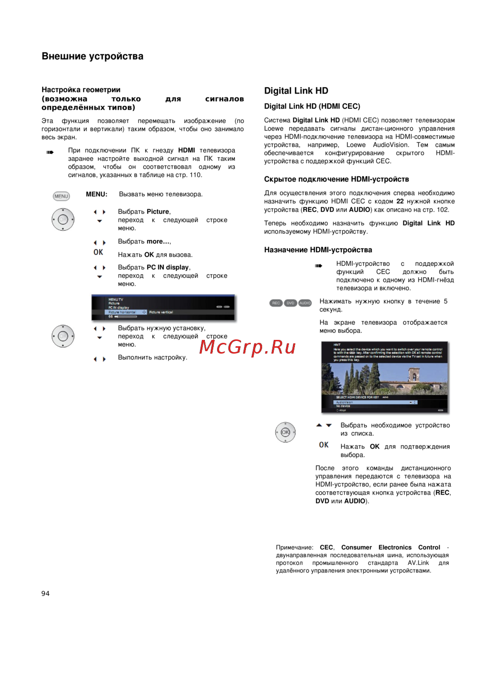 Узнайте, как настроить геометрию изображения на телевизоре и использовать функции HDMI CEC для управления совместимыми устройствами. Полезные советы и инструкции.